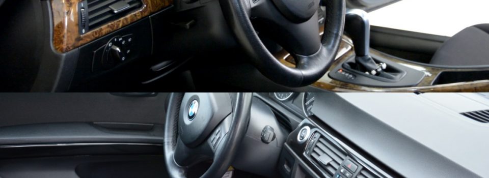 Folierung von Interior Diese Teile von einem BMW wurden in schwarz glänzend foliert. Teile aus dem Innenraum werden meistens ohne Gewährleistung foliert, da die Folien nur bedingt dazu geeignet sind.